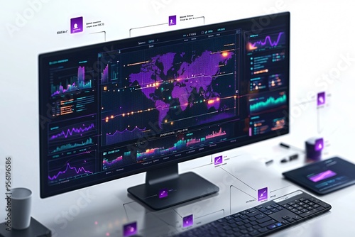 Visual representation of a management system displaying finance and sales metrics, ideal for Business presentations, strategy meetings, and analytics reports with copy space.