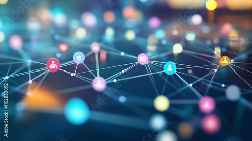 Visual representation of a social network with nodes, connections, and share symbols, illustrating dynamic online interactions.