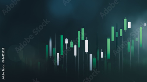 Visual representation of market trends, with green candlestick, indicates growth and potential profitability, dark background.