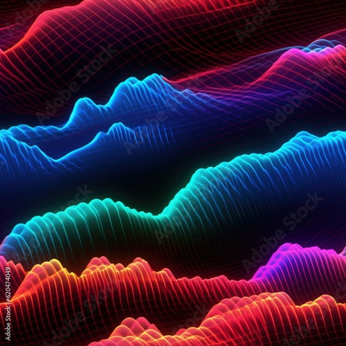 Visualization of sound waves. Abstract futuristic background with colorful glowing neon moving high speed wave lines and bokeh lights. Data transfer concept. Fantastic wallpaper. Generative AI