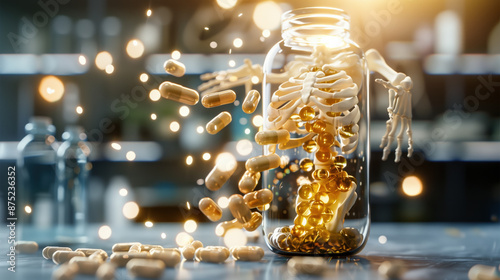Visualizing Vitamin K for Bone Strength, Holographic Vitamin K Display, Robust Skeletal System Illustration, Health Product Promotion
