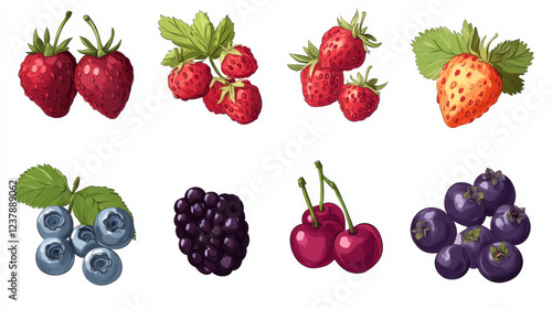 Vitamins in berries, nutrition benefits of strawberry, cherry and blueberry, raspberry, currant and blackberry, honeyberry and cowberry, buckthorn, rowanberry and barberry fruits. Healthy food vector