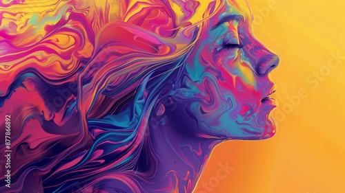 Vivid Abstract Art of Woman's Profile in Multicolored Swirls
