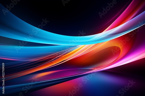 Vivid abstract composition with flowing curves and bright gradients of blue, red, and orange, creating a dynamic and futuristic design.