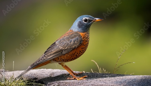 Vivid and Vibrant Rufousbellied Thrush Amidst Lush Greenery, Caught in the Soft Light of an Enchanting Misty Morning
