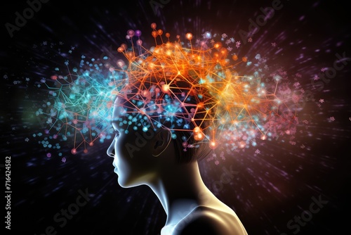 Vivid creative ideation - brain radiant symphony of ingenious imagery, wit neural graphics, psychedelic visualization. Chromatic neurons dance in witty, neural neon tapestry of imaginative thinking