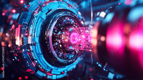 Vivid display of futuristic technology with vibrant colors and intricate details in a digital environment