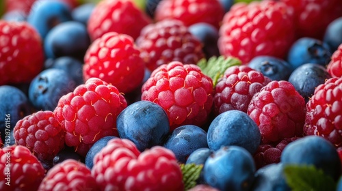 Vivid display of raspberry and blueberry medley with a fresh and colorful organic ingredient aesthetic
