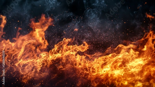 Vivid Flames and Smoke in a Dark Background for Abstract Background