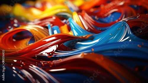 Vivid multicolored paint streams forming swirls and eddies on surface in 3d image