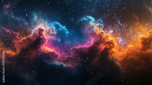 Vivid nebula with swirling colors, high contrast, in deep space. space background