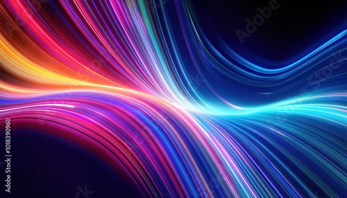 Vivid Neon Light Burst. Multi Colored Light Rays Converging to a Central Point in Dynamic Spectrum of Radiant Colors and Lines