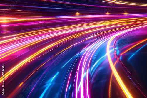 Vivid neon light streaks on a black background, ideal for creating eye-catching banners, postcards, or illustrations