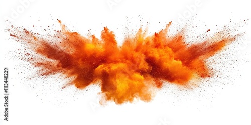 Vivid Orange Explosion of Powder Against a White Background Creating a Chaotic and Dramatic Visual Effect in High Resolution