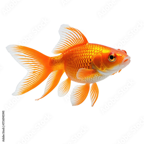 Vivid orange goldfish with flowing fins. Isolated on black background