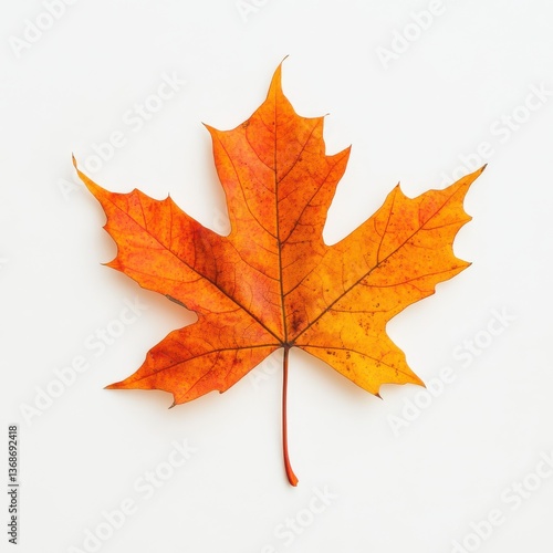 Vivid Orange Maple Leaf Exhibiting Autumn Colors on a Clean White Backdrop for Seasonal Aesthetics