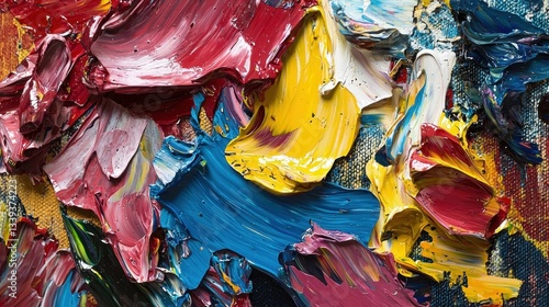 Vivid paint strokes in a myriad of colors create an abstract composition on fabric. The blending textures reveal artistic techniques and expressive energy
