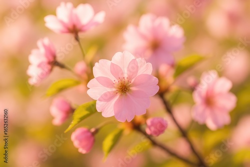 Vivid pink blooming flower bathed in sunlight with a gentle blur highlighting the center