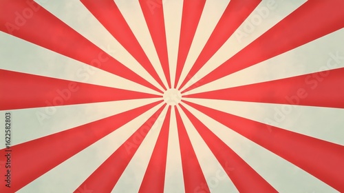 Vivid Radial Sun Concept with Red and White Strips and Gentle Circular Radiating Center Design