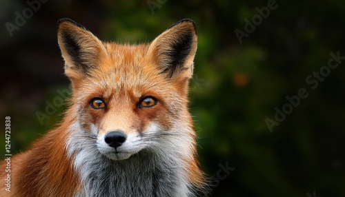 Vivid Red Fox Portrait in a Winter Landscape, Captured with Striking Detail and Depth, Showcasing the Dynamic Textures of Forest and Snow.
