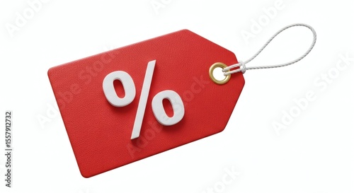 Vivid Red Price Tag with White Percentage Symbol, Representing Retail Sales, Special Discounts, Promotional Offers, and Online Shopping Savings.