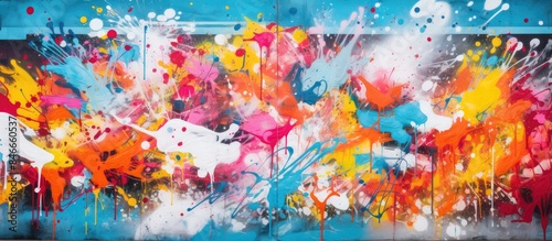 Vivid street art graffiti backdrop perfect for wallpapers and designs, featuring an abstract urban painting on a textured wall with copy space image.