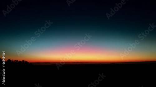 Vivid sunset colors transition from deep blue to warm hues over distant hills in serene outdoor view during twilight Generative AI