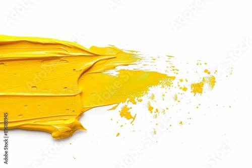 Vivid Yellow Paint Stroke - Dynamic Brush Splash on White Background