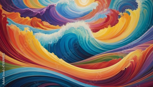 Vividly colored waves in a dynamic abstract painting, evoking a sense of movement and rhythm through the swirling patterns. AI Generation