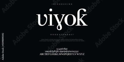 Viyok Abstract Fashion font alphabet. Typography typeface uppercase lowercase and number. vector illustration