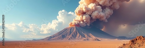 Volcanic ash cloud dispersing over desert landscape, geology, volcano