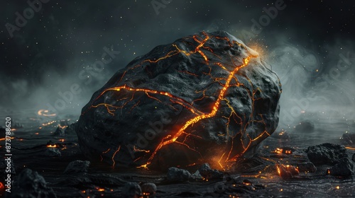 Volcanic Rock with Glowing Lava Cracks