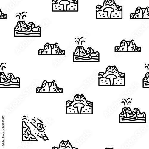 Volcano Lava Eruption Vector Seamless Pattern Thin Line Illustration