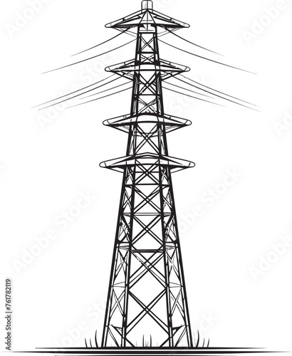 VoltageTower Vector Black Logo Design for High Voltage Electric Pole ElectraPillar Iconic Emblem for Electric Infrastructure