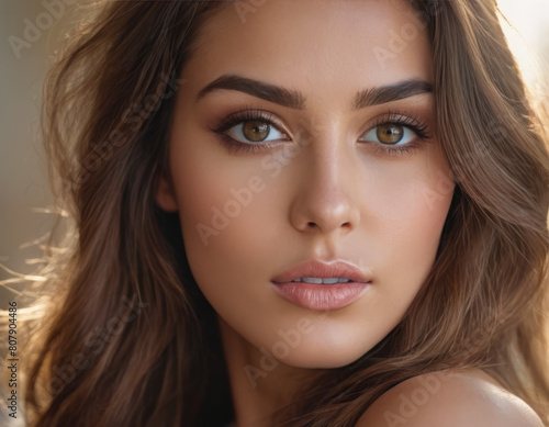 Volto sereno di una donna con capelli sciolti e un sorriso lieve.