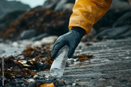 Volunteer Cleans Coastal Plastic Pollution on Beach for Earth Day Campaign