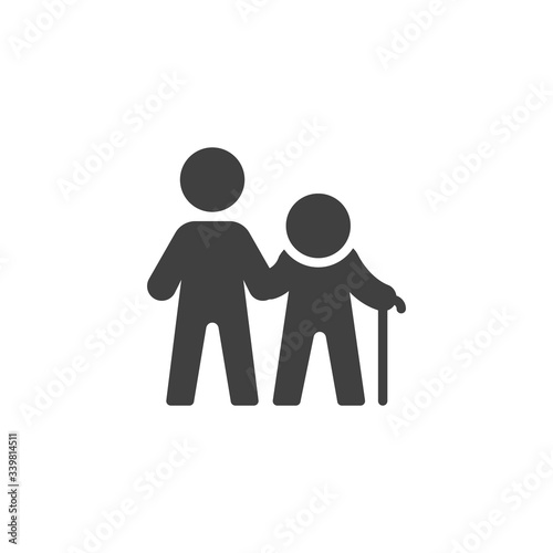 Volunteering vector icon. filled flat sign for mobile concept and web design. Man helps a disabled person glyph icon. Symbol, logo illustration. Vector graphics