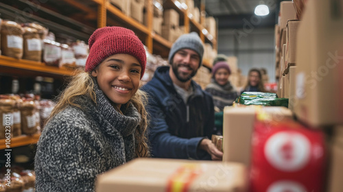Volunteers organize food donations at a community pantry during winter, spreading joy and support to those in need