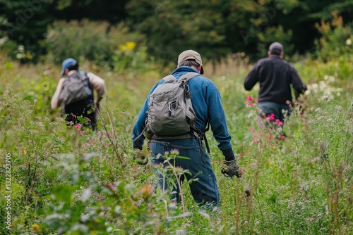 Volunteers Work Together to Remove Invasive Plants From a Meadow in a Local Conservation Effort During Early Autumn