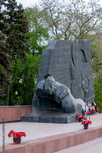 VORONEZH, Russia, May 14, 2023: Monument of Glory on Moskovsky Prospekt in Voronezh in summer