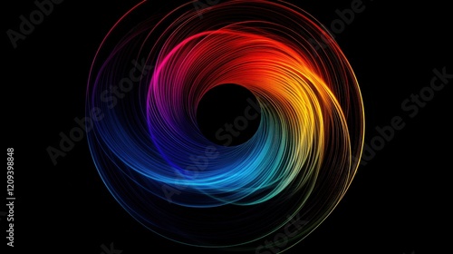 Vortex formed by blending red, orange, and blue paint, abstract image