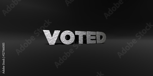 VOTED - hammered metal finish text on black studio - 3D rendered royalty free stock photo. This image can be used for an online website banner ad or a print postcard.