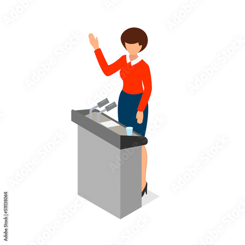 Voting, woman, speaker votes "yes" behind a stand with a microphone
