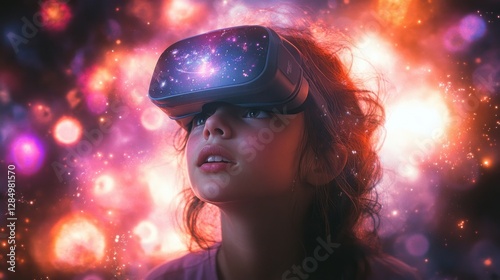 VR Future Concept Digital Reality Interactive Experience in Colorful Cyber Metaverse Simulation Technology