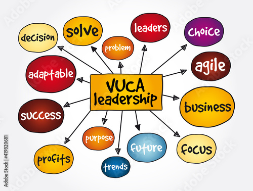 VUCA Leadership (Volatility, Uncertainty, Complexity, Ambiguity) mind map, business concept for presentations and reports