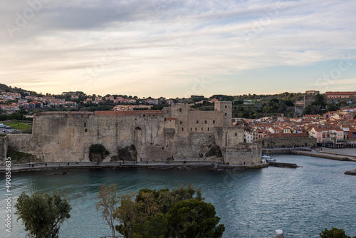 Vue au coucher du soleil sur le Château Royal à Collioure depuis La Glorieta (Occitanie, France)