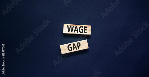 Wage gap symbol. Concept words Wage gap on wooden blocks on a beautiful black table black background. Business, support and wage gap concept. Copy space.
