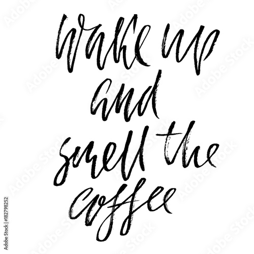 Wake up and smell the coffee. Dry brush lettering. Modern calligraphy poster. Vector illustration.