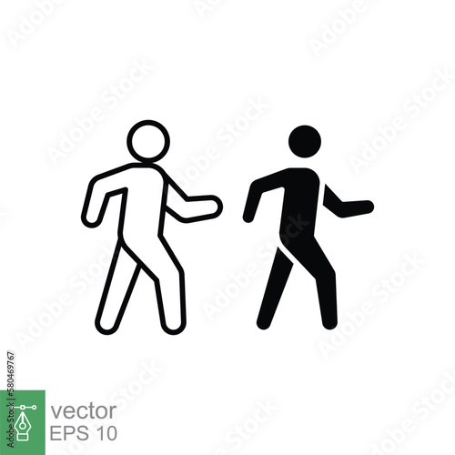 Walk line and glyph icon. Simple outline and solid style. Pedestrian, man, pictogram, human, side, walkway concept symbol. Vector illustration isolated on white background. EPS 10.