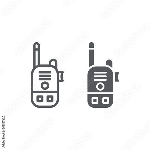 Walkie talkie line and glyph icon, communication and transmitter, radio set sign, vector graphics, a linear pattern on a white background.